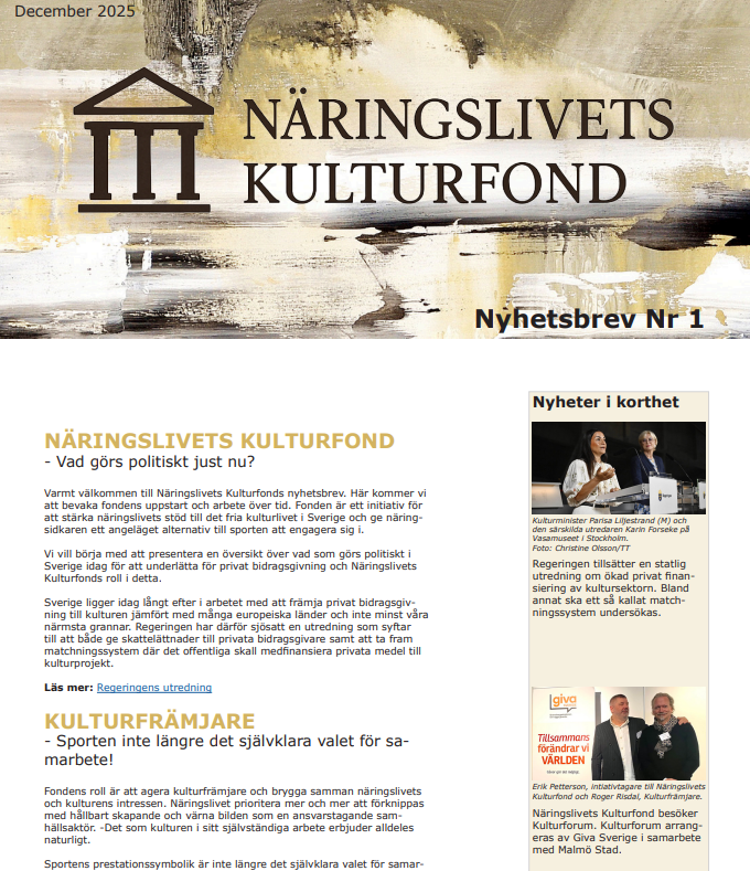 Näringslivets Kulturfonds nyhetsbrev nr 1